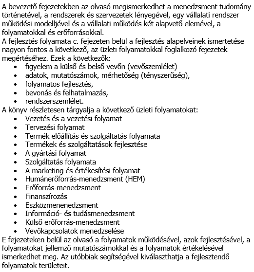 A könyvet azoknaka menedzsereknek ajánlom, akik nem tudják, hogyan kezdjék el és folytassák cégük fejlesztését!